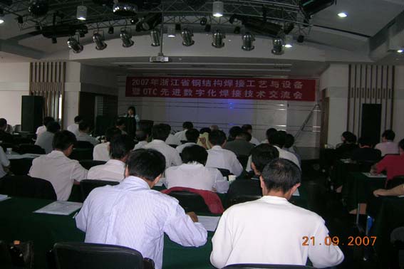 2007年9月與浙江省建筑鋼結構行業(yè)協(xié)會在杭州聯(lián)合召開 “焊接工藝和焊接設備技術交流研討會”。市科協(xié)學會部吳建國副部長參加了會議。本次研討會邀請了浙江省鋼結構行業(yè)副秘書長方鴻強教授、歐地希機電(上海)有限公司董繼東經(jīng)理、浙江精工集團公司王自根和高張偉工等專家,他們分別作了《鋼結構行業(yè)市場調查與現(xiàn)狀分析》、《OCT先進的焊接工藝與設備》、《改進型埋弧自動焊機頭對焊接質量提高的影響》、《建筑鋼結構工程低溫焊接技術應用和研究》等專題報告。有100余名人員參加了此會議。
