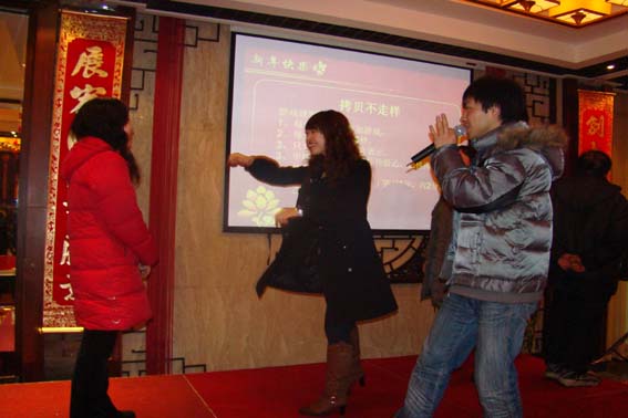 1月26日,兩院一所全體員工在楊公堤畔的飲湖上酒店宴會廳舉行了2008年春節(jié)聯(lián)歡會兼年終聚餐活動。本次聯(lián)歡會由團支部全程進行組織策劃,安排了《拷貝不走樣》、《空運乒乓球》等等各式各樣好玩的小游戲和豐厚的獎品,讓每位員工都能夠上臺一展身手。臺上的游戲參與者玩得全神貫注,臺下的觀眾看得笑聲連連。拿著經過激烈比賽得來的獎品,參賽人員更是笑得合不攏嘴。雖然室外是寒凍,但在宴會廳里卻感覺如春天一般。大家坐在一起邊聊天邊做游戲,歡聲笑語,其樂融融。